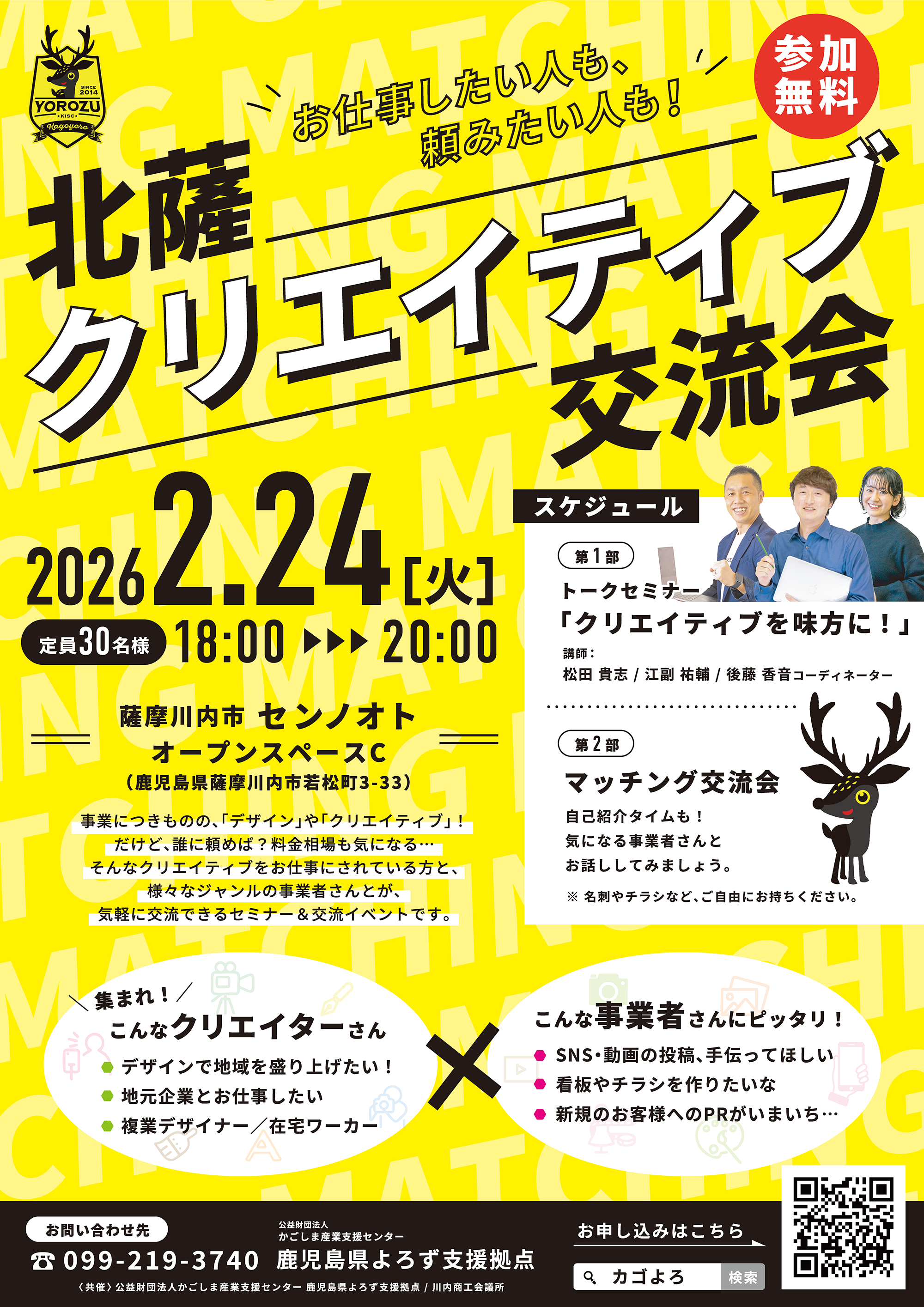 クリエイターと、クリエイティブを必要とする方との、マッチング交流会!プチセミナー付き!